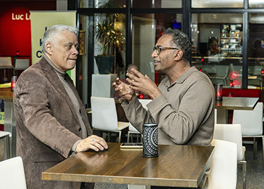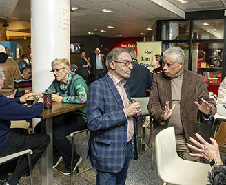 Vervolgens gingen n een tweegesprek Sebastiaan de Voogd (onderzoeker bij Berenschot) en Arwin van Buuren (plaatsvervangend voorzitter van de gemeenteraad en hoopgleraar Bestuurskunde aan de EUR) verkennen wat er in Capelle gebeurt als we de plannen uitvoeren om nog 10.000 woningen bij te bouwen (5000 in Rivium en 5000 elders in de gemeente). Is dat denkbaar en wat zijn de belangrijkste voetangels en klemmen.