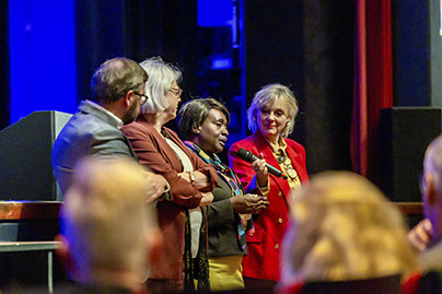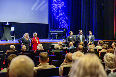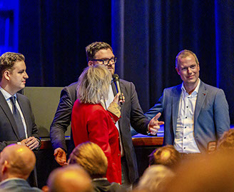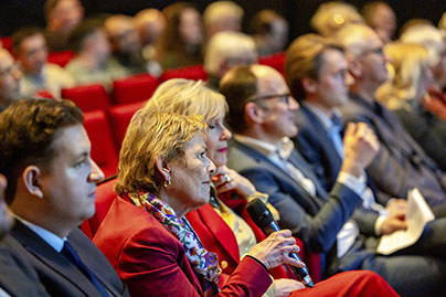 Na de pauze was het woord aan de politiek. Hier werd ook de rol van de dagvoorzitter Mylou Frencken - de partner van onze vaste mediator Frenk van der Linden die vanwege ziekte niet aanwezig kon zijn – prominenter. Op plezierige wijze hield ze de regie en kwamen de 10 lijsttrekkers zowel op film (korte pitch over bouwen en wonen in Capelle) als fysiek aan het woord. Er was de nodige overeenstemming tussen de tien, maar over de noodzaak van 10.000 woningen (is het niet te veel aldus enkelen) en het percentage sociale woningen daarbij, bestond minder eensgezindheid.