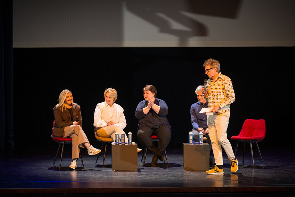 Vanuit diverse praktijkinvalshoeken werd gesproken over ervaringen, aanpak en hoe verder. Naast het onderwijs (VO - mevrouw Corine Klink, die vanuit haar ervaring als specialiste Passend Onderwijs), namen aan het tafelgesprek deel dr. Rob Pereira (sociaalpediater/kinderarts die zijn praktijkervaringen en zijn kennis van zaken deelde), mevrouw Nancy Dijksman (onderneemster en moeder van een zoon waarvan op latere leeftijd autisme werd gediagnosticeerd) en mevrouw Simone Luurs (van Galileo IT-services/GGZ begeleidster, veel te maken met jongeren met autisme). De bezoeker uit de zaal bleek zelf in het spectrum van autisme te vallen en vulde het gesprek goed aan. Dit alles onder de bezielende leiding van de vaste moderato Frènk van der Linden. Natuurlijk ook een act van - dit keer - Femke Vernij. Haar act ging over een ADHD-er, wat zij schitterend uitbeeldde; zij ging haarfijn in op het dagelijks leven van een ADH-er.